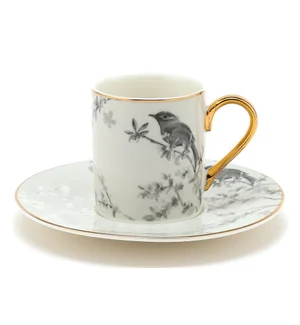 Coffee Cup Set 12pc Bird Design Gold Handle And Rim 12Pcs